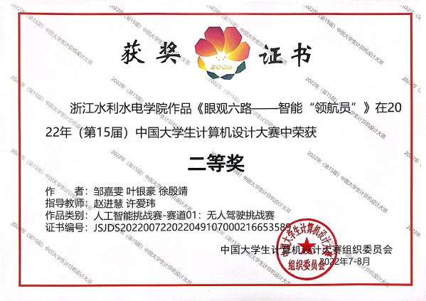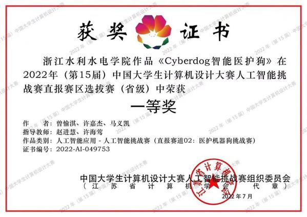 此外,我校电气学院自动化教研室主任赵进慧博士带领青年教师组建指导教师团队,组建两支参赛队伍,在近日举办的第15届中国大学生计算机设计大赛人工智能挑战赛中,参赛作品《眼观六路——智能“领航员”》获全国二等奖,作品《Cyberdog智能医护狗》在大赛直报赛区选拔赛(省级)中获一等奖。