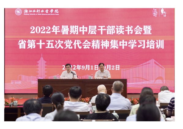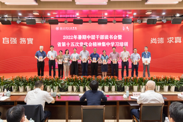 9月1-2日,学校在南浔校区思源楼报告厅举行2022年暑期中层干部读书会暨省第十五次党代会精神集中学习培训,学习《习近平谈治国理政》第四卷、省第十五次党代会精神、高校人才培养、应用型大学建设、教学改革与教师发展等专题内容。全体校领导、中层干部参加会议。