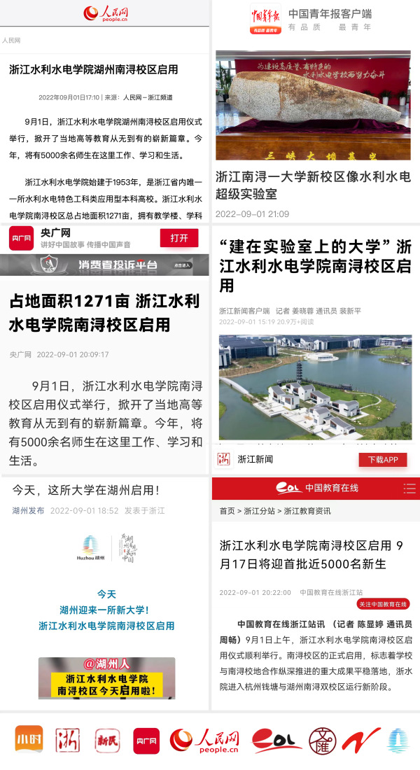 南浔校区启用,受到人民网、央广网、中国青年报、浙江新闻、浙江之声、文汇报、新民晚报、中国教育在线、钱江晚报、湖州日报、南浔融媒等多家主流媒体的关注报道。